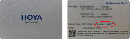 The order number is printed on the back of your Lens Quality Card. You should have received this card with your product as a proof of purchase.